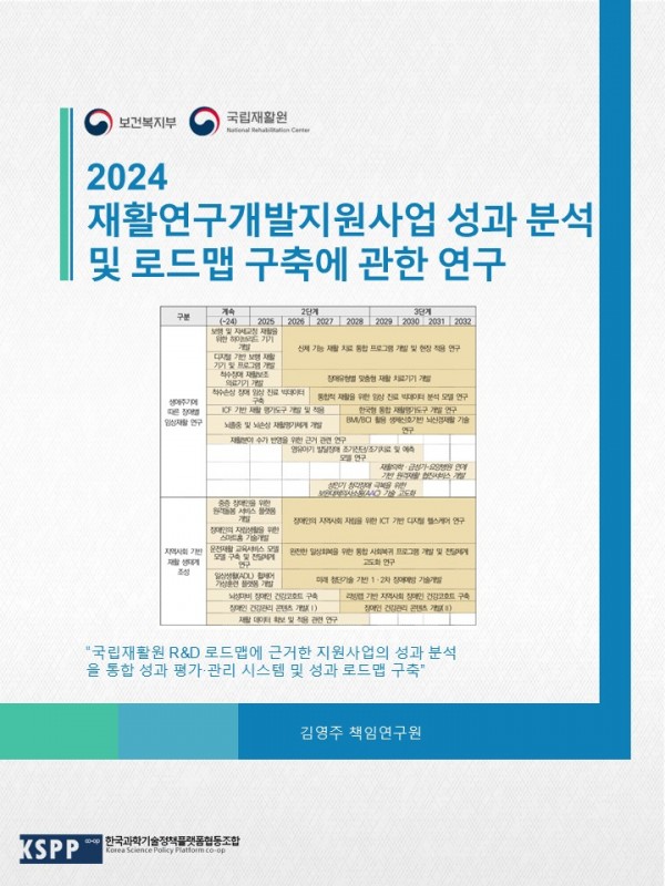 재활연구개발지원사업 성과분석 및 로드맵 구축에 관한 연구 관련링크 페이지 정보 작성일26-03-04 16:19 조회4회 본문 국립재활원 R&D 성과체계 및 성과로드맵 구축 이전글 다음글 목록